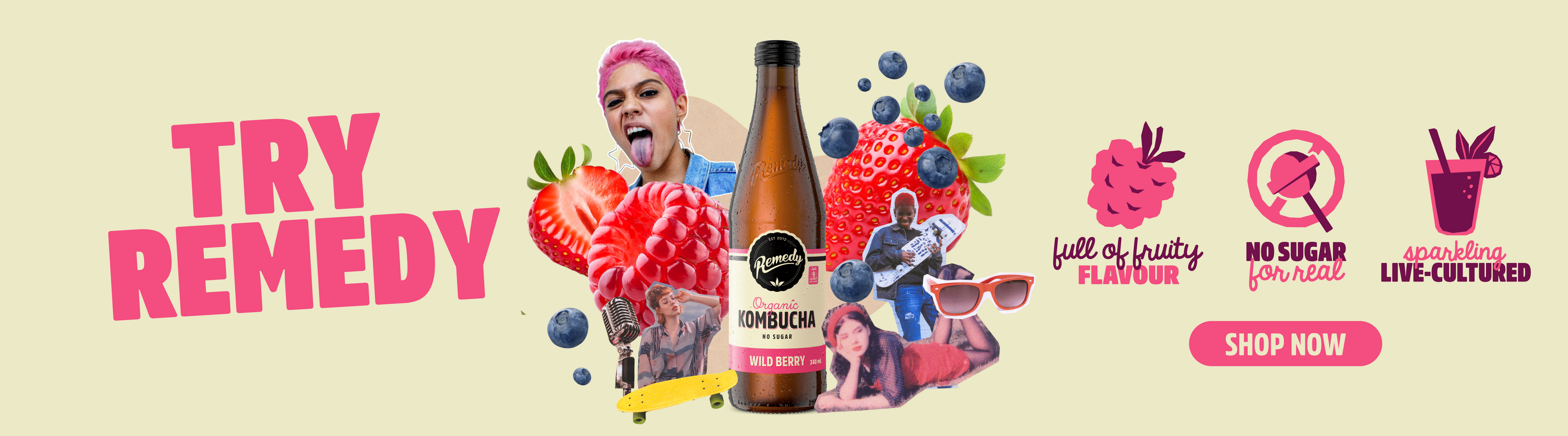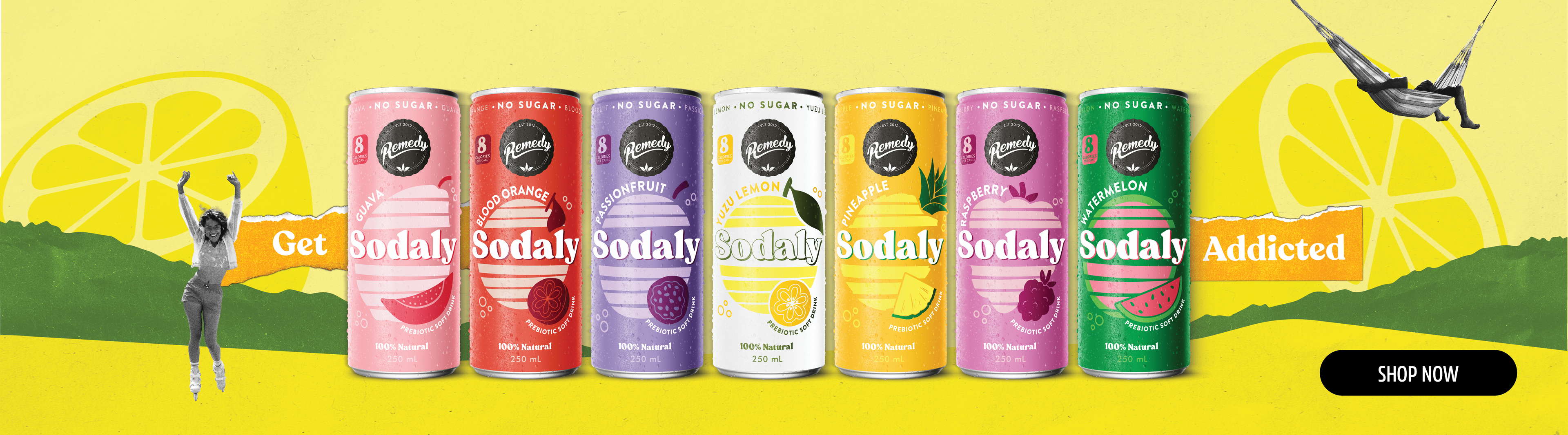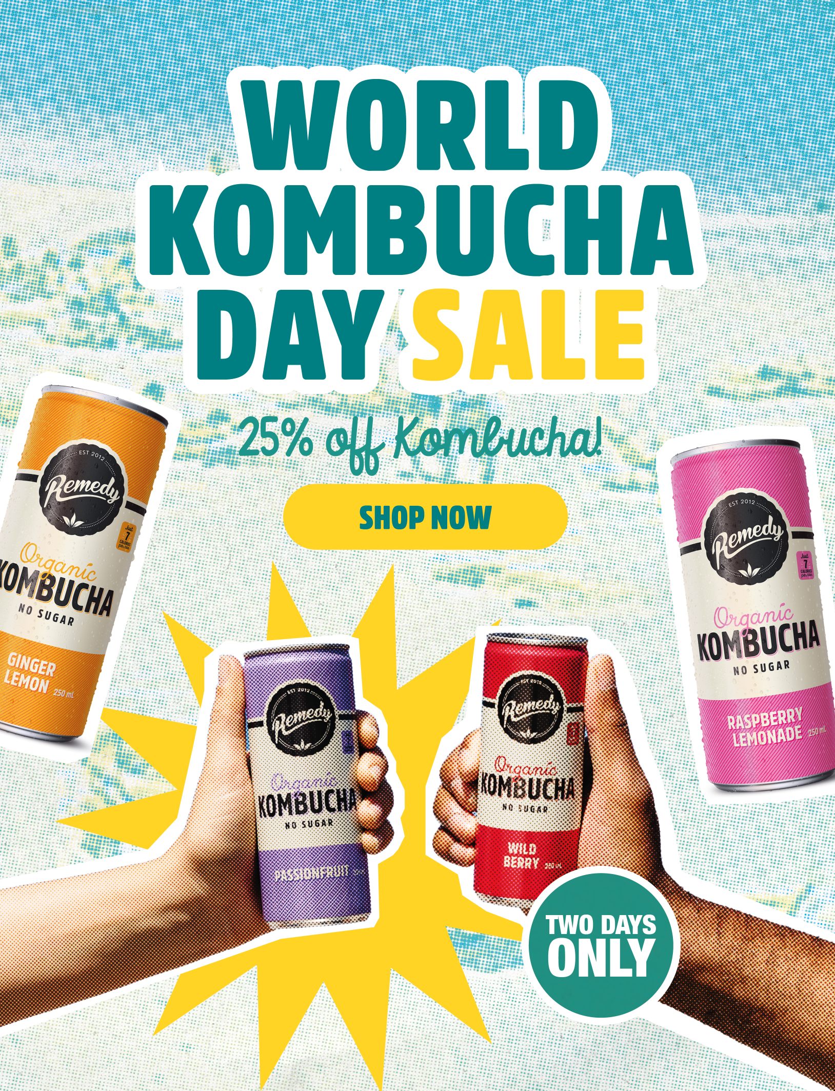 Sarah and Emmet Condon started Remedy Drinks in 2012 on their kitchen bench with a tasty batch of home-brewed kombucha. Meanwhile, the supermarket was full of drinks that were either straight-up-unhealthy, fake healthy, or legit healthy but not-so-tasty. They looked around and thought, “There’s a Remedy for that”! They cracked a secret magic code: a drink that was tasty AND genuinely better for you. Made the old-school way and brewed for 30 days using real organic black and green tea and a live culture, also known as a SCOBY or mother culture (symbiotic culture of good bacteria and yeast). Fast forward a few years, and the Remedy drinks family has expanded to a growing range of better, tastier drinks, including Remedy Kombucha, Remedy Sodaly, a prebiotic, all natural soft drink, Remedy Shots and Remedy Switchel ACV, an old school drink made using apple cider vinegar and real ginger. All Remedy drinks are all 100% natural, contain no sugar and are chock-full of real goodness including live cultures, tea polyphenols (aka antioxidants), organic acids, prebiotics and more! Try the whole range of functional drinks online today with free shipping Australia-wide.