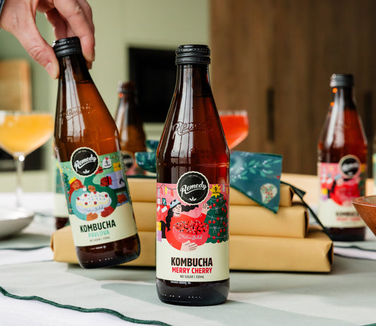 At Remedy Drinks we are obsessed with creating the best darn kombucha (also referred to as booch) going ‘round. We brew the old school way in small batches for 30 days using real, organic tea leaves and a SCOBY, which stands for Symbiotic Culture Of (good) Bacteria and Yeast. The result is a flavourful, all natural, sparkling drink that is packed with live cultures, tea polyphenols (antioxidants) and organic acids. Best of all, it has no sugar, for real. Remedy Kombucha is non-alcoholic and is safe out when kept in or out of the fridge. It is also safe to consume during pregnancy and while breastfeeding. Remedy Drinks are handcrafted and bottled in Melbourne, Australia.
