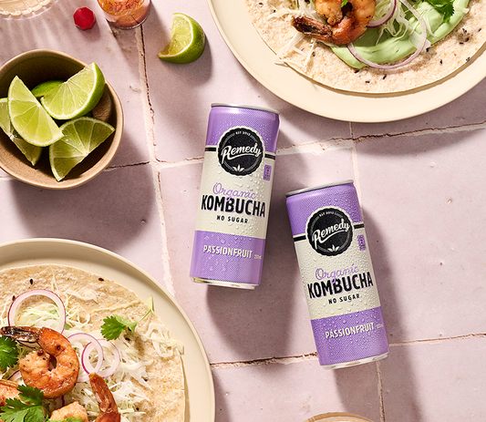 At Remedy Drinks we are obsessed with creating the best darn kombucha (also referred to as booch) going ‘round. We brew the old school way in small batches for 30 days using real, organic tea leaves and a SCOBY, which stands for Symbiotic Culture Of (good) Bacteria and Yeast. The result is a flavourful, all natural, sparkling drink that is packed with live cultures, tea polyphenols (antioxidants) and organic acids. Best of all, it has no sugar, for real. Remedy Kombucha is non-alcoholic and is safe out when kept in or out of the fridge. It is also safe to consume during pregnancy and while breastfeeding. Remedy Drinks are handcrafted and bottled in Melbourne, Australia.