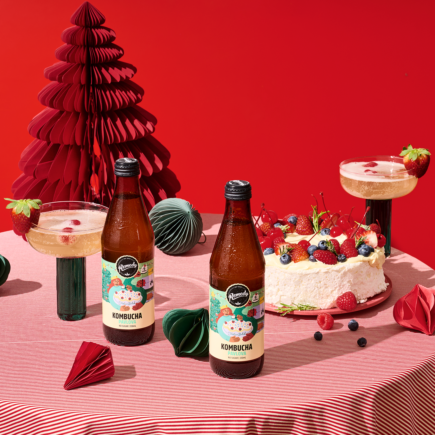 Merry Cherry has a juicy, ripe cherry flavour with a light fizz to keep things merry and bright. Tart, fresh, and cheerfully refreshing, you can forget the Champers, as this kombucha will be your new go-to holiday toast.